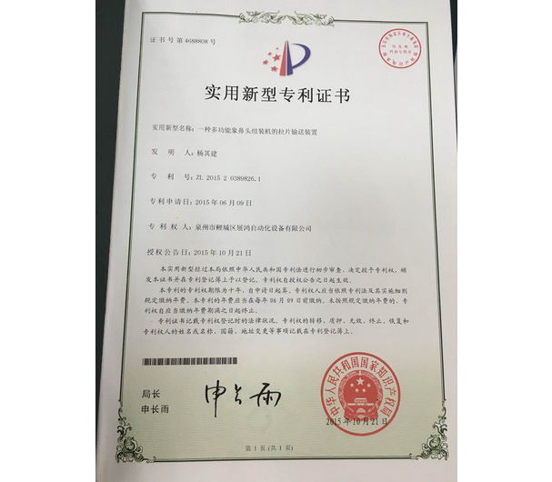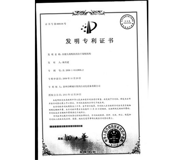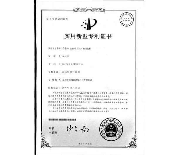 YG頭專(zhuān)利證書(shū)